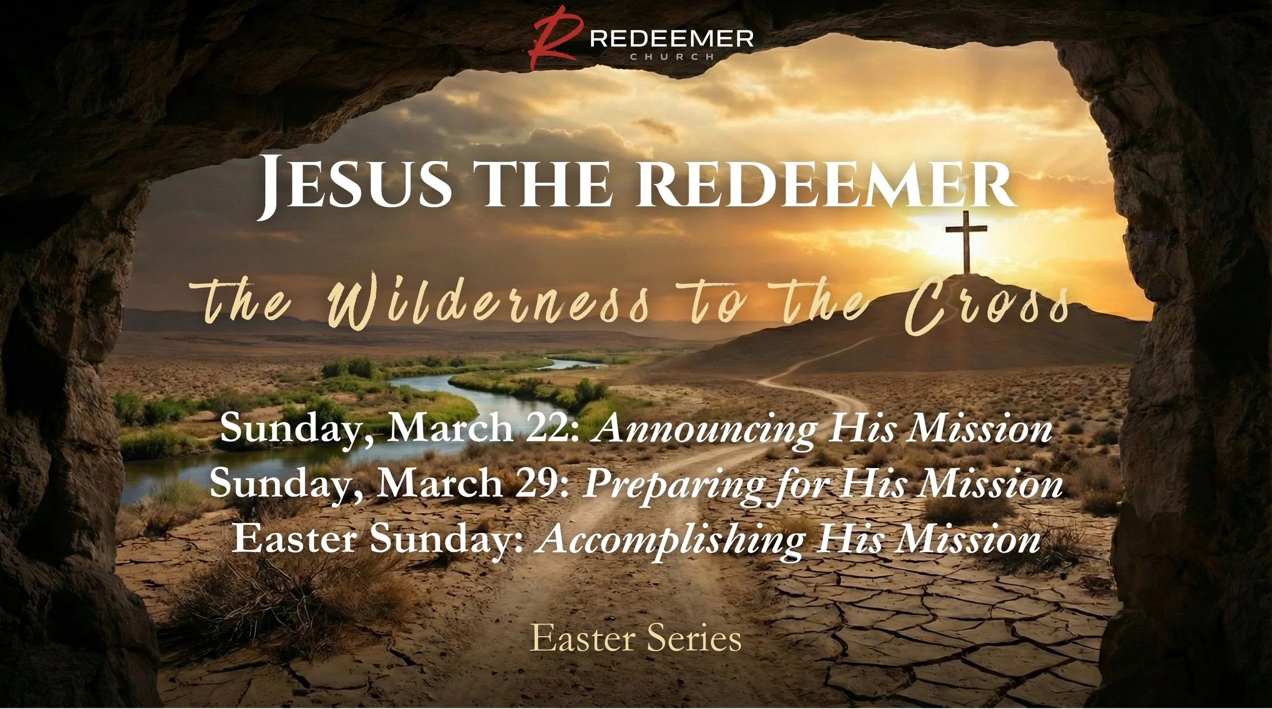 This Sunday, we will be continuing our Easter series, Jesus the Redeemer: The Wilderness to the Cross, which will culminate on Easter Sunday.