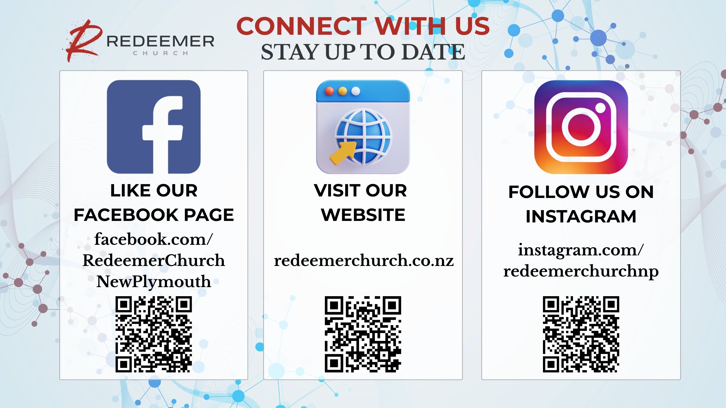 As some of you have already discovered, Redeemer Church is now on Facebook and Instagram. We’d love for you to join!